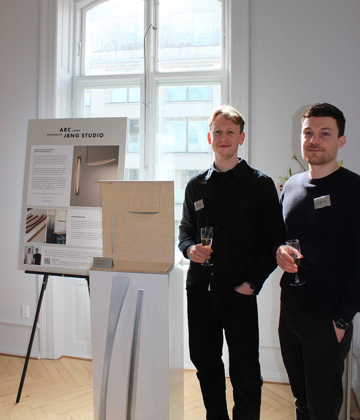 From their own design studio, JBNG, the duo endeavours to create durable, useful and yet evocative objects. Their contribution is Arc. A two-piece lighting object that appears related but differs in appearance and use.